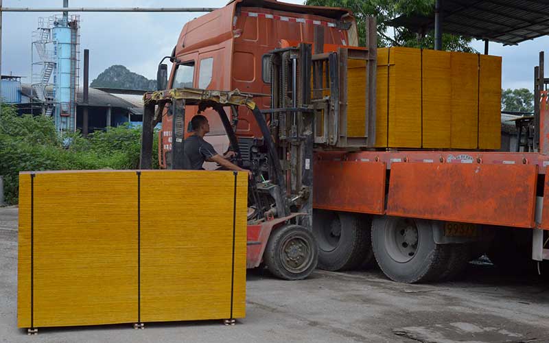 這批模板是發往廣東梅州的,我們公司在梅州承建了一個樓盤,怪獸木業建筑模板質地非常結實,鋸成小塊模板不開膠,施工方便,省下很多時間和精力。